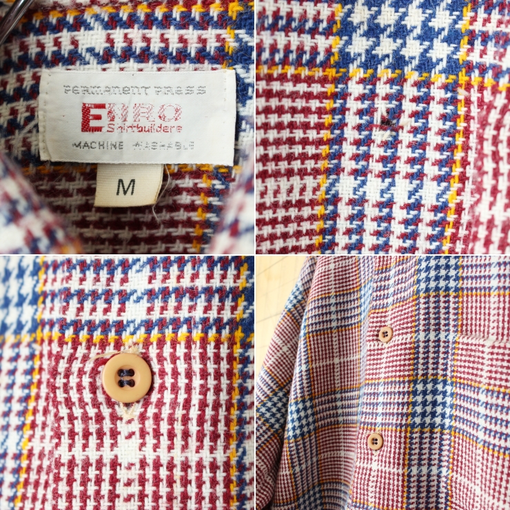 80s 90s USA ENRO アクリルチェックシャツ レッド メンズM 長袖 アメリカ古着です。