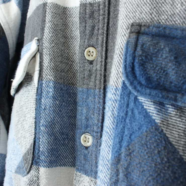 80s 90s USA ヘビーフランネル ブロックチェックシャツ ブルー ブラック メンズXL相当 長袖 アメリカ古着です。