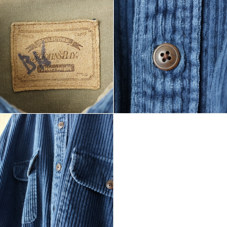 80s 90s USA ST JOHN'S BAY 太畝コーデュロイシャツ ネイビー ブルー メンズL 長袖 アウトドア アメリカ古着です。