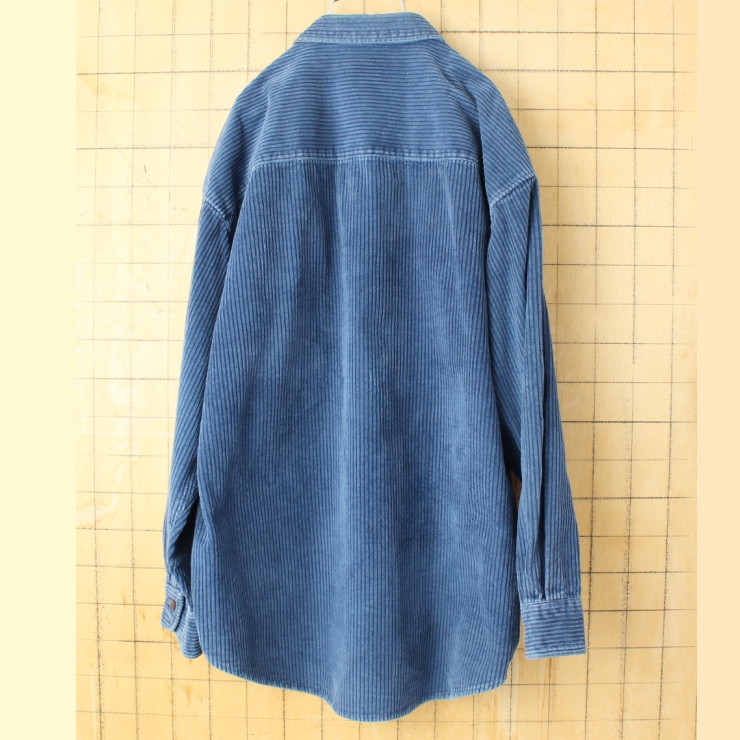 80s 90s USA ST JOHN'S BAY 太畝コーデュロイシャツ ネイビー ブルー メンズL 長袖 アウトドア アメリカ古着