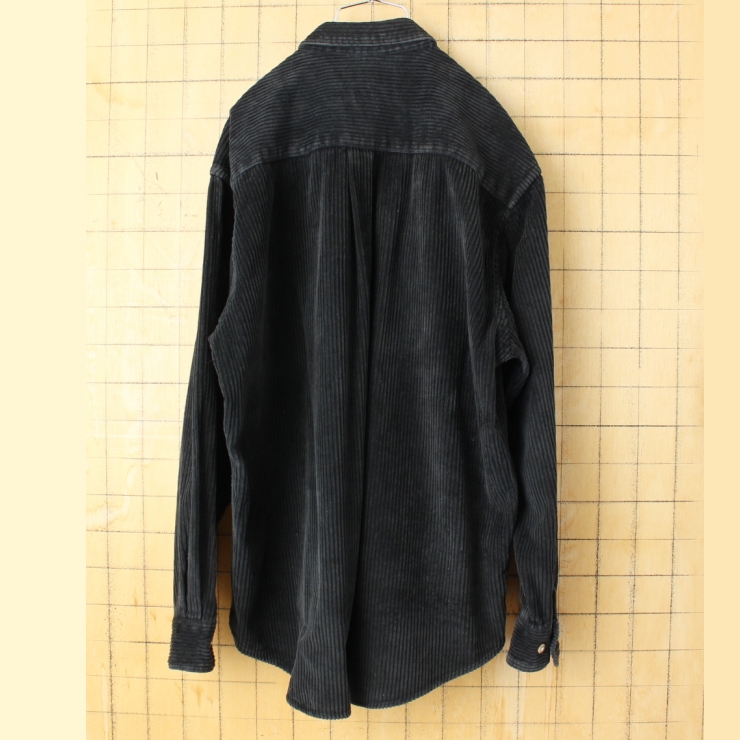 ビッグサイズ 80s 90s USA BRITCHES 太畝コーデュロイシャツ ブラック メンズL 長袖 アウトドア アメリカ古着