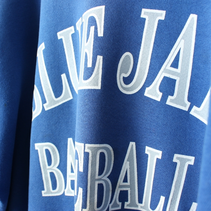 フロント、袖にMLBのBLUE JAYS、バックにナンバリングのプリント。