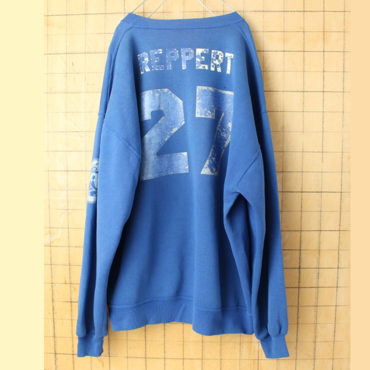 ビッグサイズ 90s USA製 RUSSELL ATHLETIC BLUE JAY BASEBALL 両面プリントスウェット ブルー メンズXXL アメリカ古着