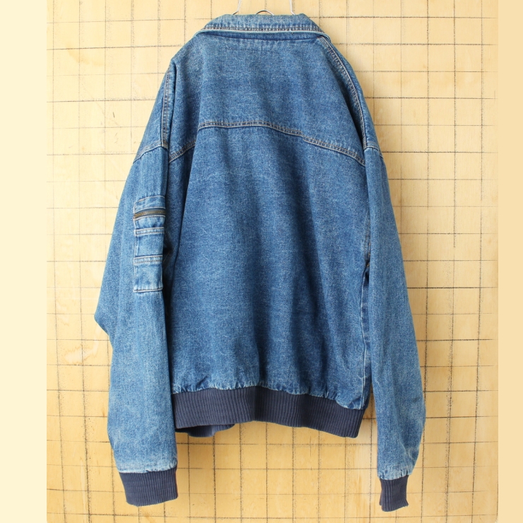 80s 90s USA ジップアップデニムジャケット メンズL ブルー アメリカ古着