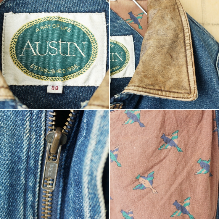 80s 90s USA AUSTIN ジップアップデニムジャケット メンズL相当 ブルー アメリカ古着です。