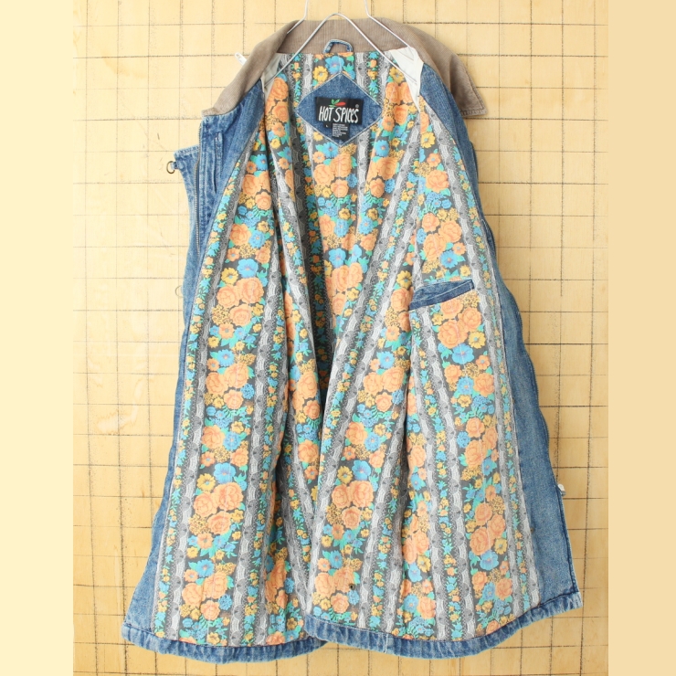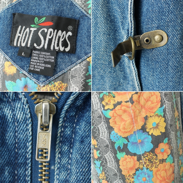 80s 90s USA HOT SPICES ジップアップデニムカバーオール ジャケット レディースL ブルー アメリカ古着です。