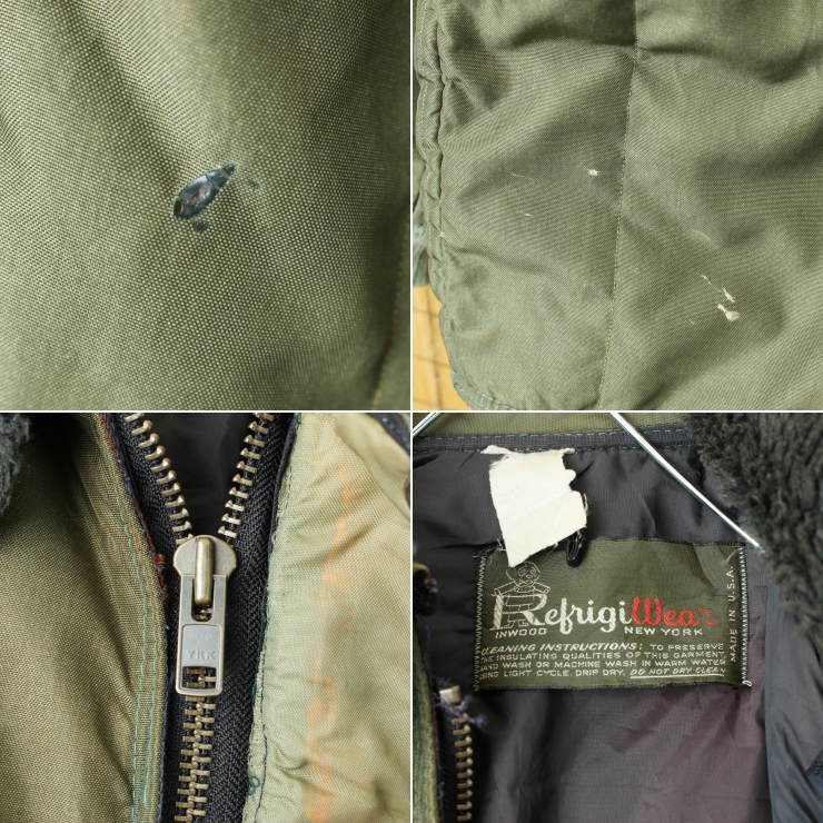 60s 70s USA製 RefrigiWear ナイロン中綿ジャケット カーキ グリーン メンズL アメリカ古着