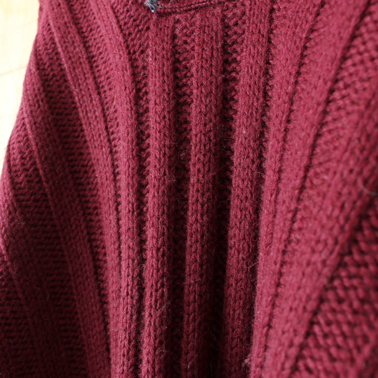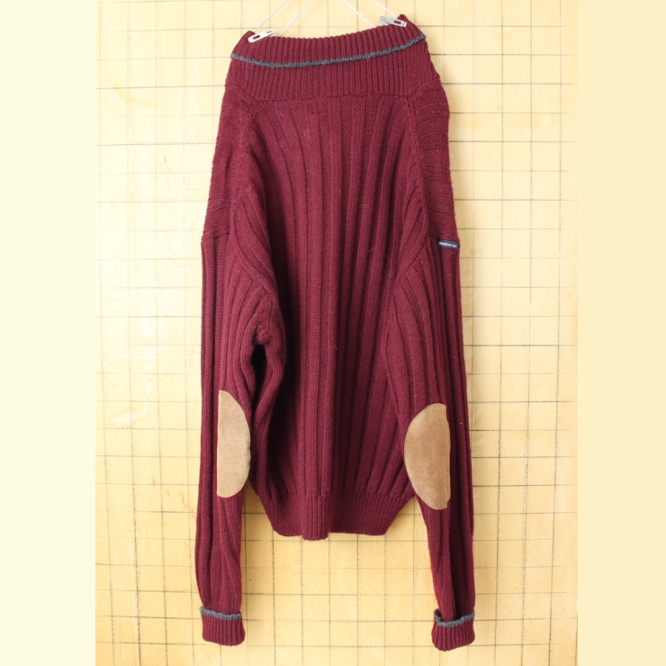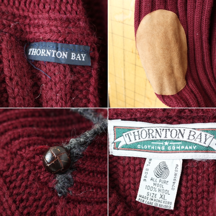 ビッグサイズ 90s USA THORNTON BAY ウールニットショールカラーセーター ボルドー レッド メンズXL アメリカ古着です。