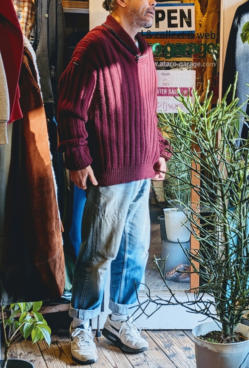 90年代頃のTHORNTON BAYウールショールカラーセーターです。