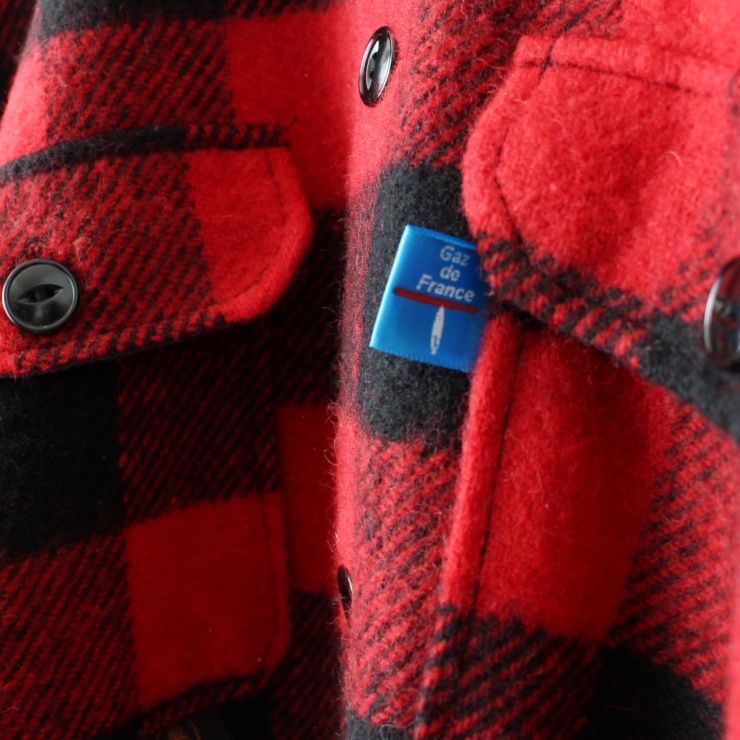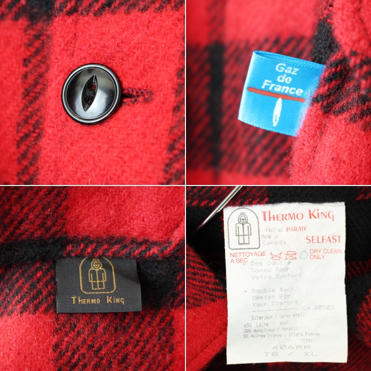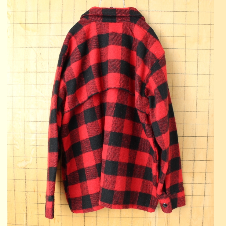 80s 90s CANADA製 THERMO KiNG ブロックチェック ボックスシルエットウールシャツ レッド ブラック メンズXL 長袖 アメリカ古着です。