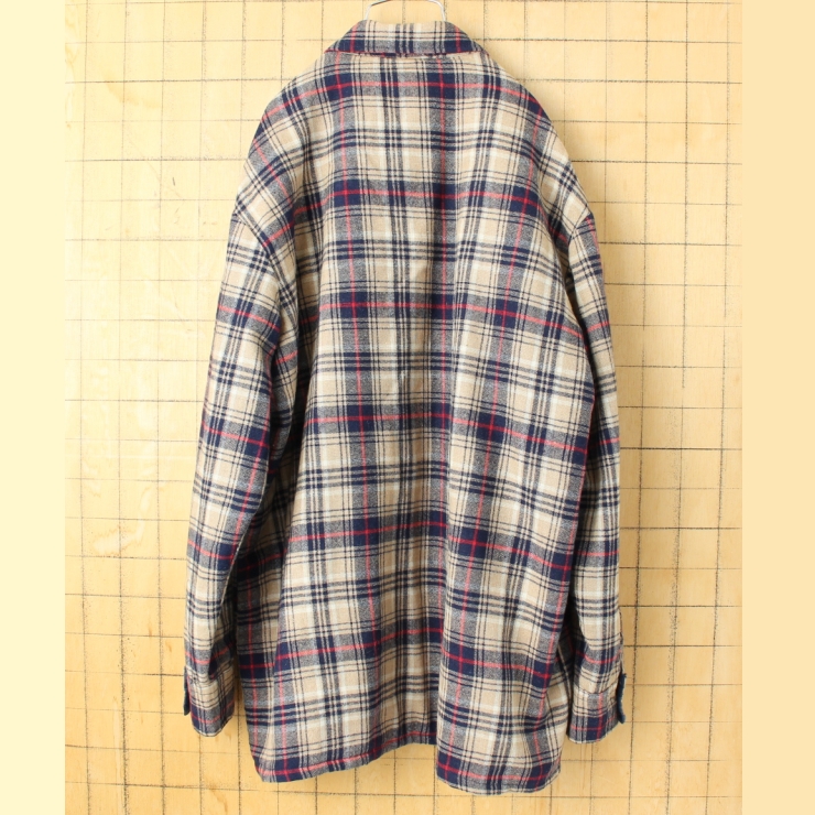 ビッグサイズ 80s 90s USA MONTGOMERY WARD キルティングライナー チェックウールシャツ ベージュ メンズXL 長袖 中綿 アメリカ古着