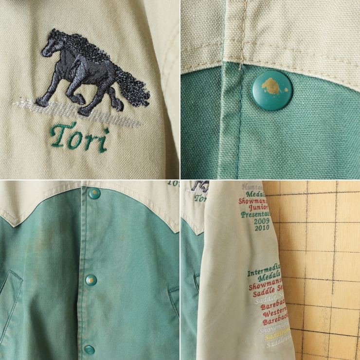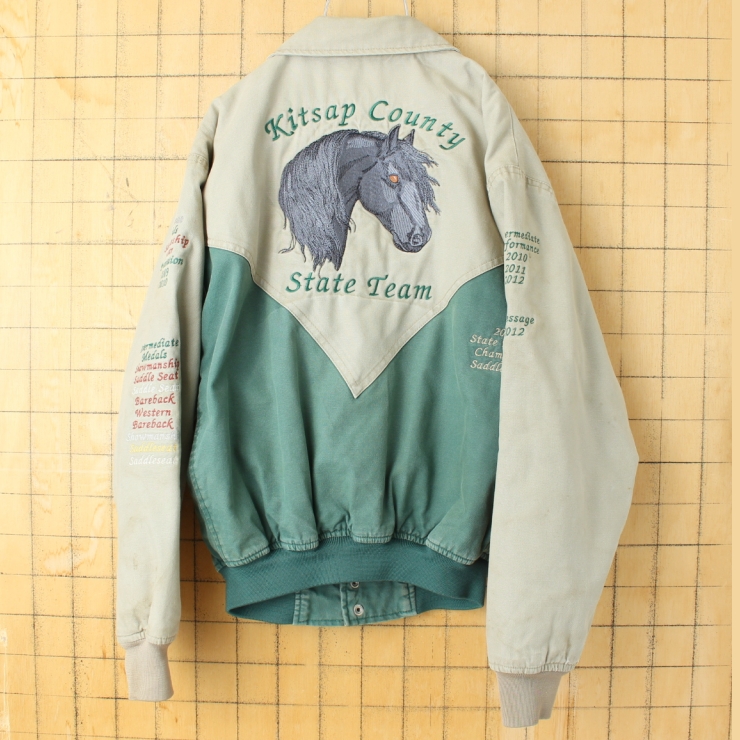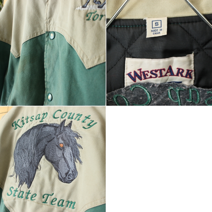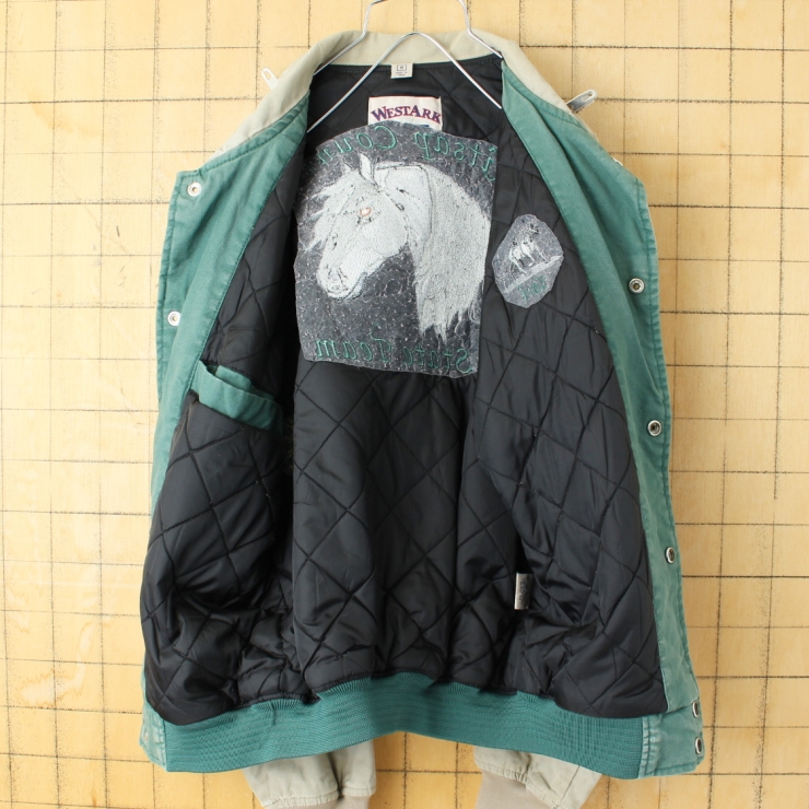 USA WESTARK ウマ刺繍 中綿ジャケット ベージュ グリーン メンズS アメリカ古着です。