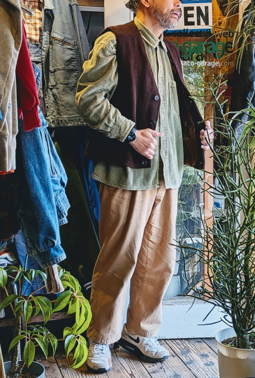 60s 70s ドイツ リアルファーライナー ウールワークベスト メンズML相当 ブラウン アウトドア ユーロ ヨーロッパ古着です。