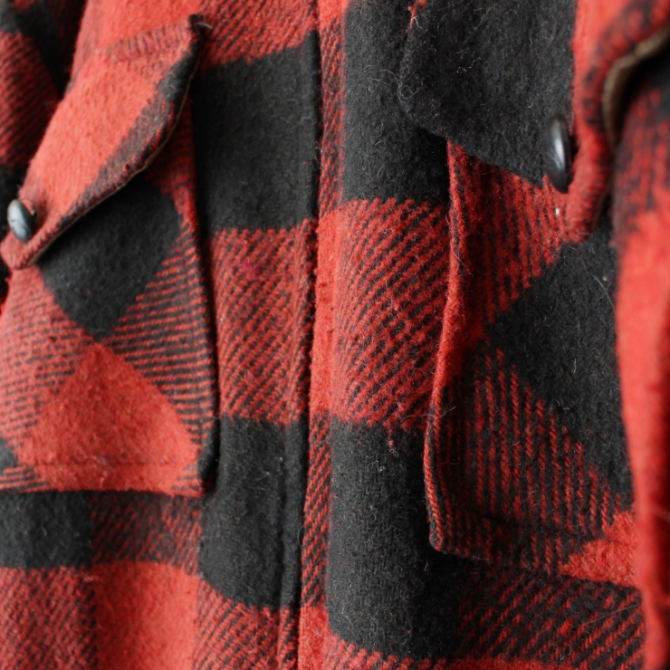 ボディは程よい厚みのあるウール生地、レッドとブラックのチェック柄。