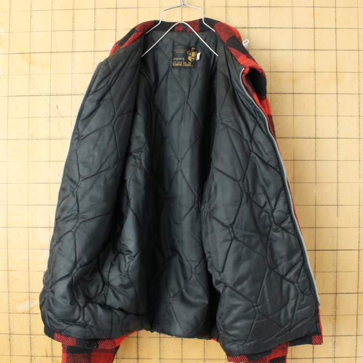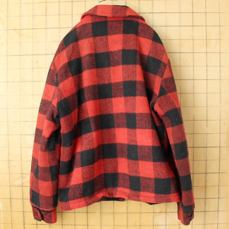 60s 70s USA Guild Hall ブロックチェックウールジャケット メンズL相当 レッド ブラック アメリカ古着