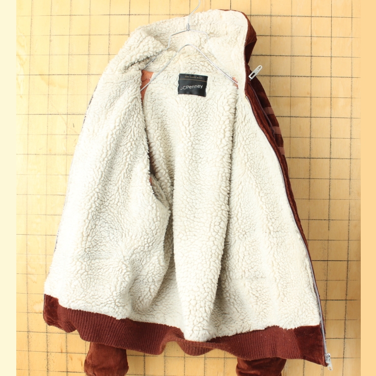 70s 80s USA JCPenney ボアライナー ジップアップコーデュロイジャケット メンズL相当 ブラウン アメリカ古着