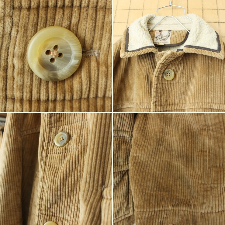ボディは程よい厚みのある太畝コーデュロイ生地、裏地は暖かく肌触りの良いボアライナーです。