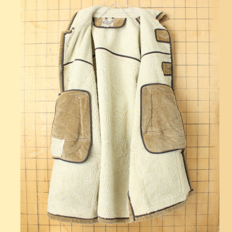 70s 80s ENGLAND製 Gloverall ボアライナー太畝コーデュロイコート メンズL相当 ベージュ ユーロ ヨーロッパ古着