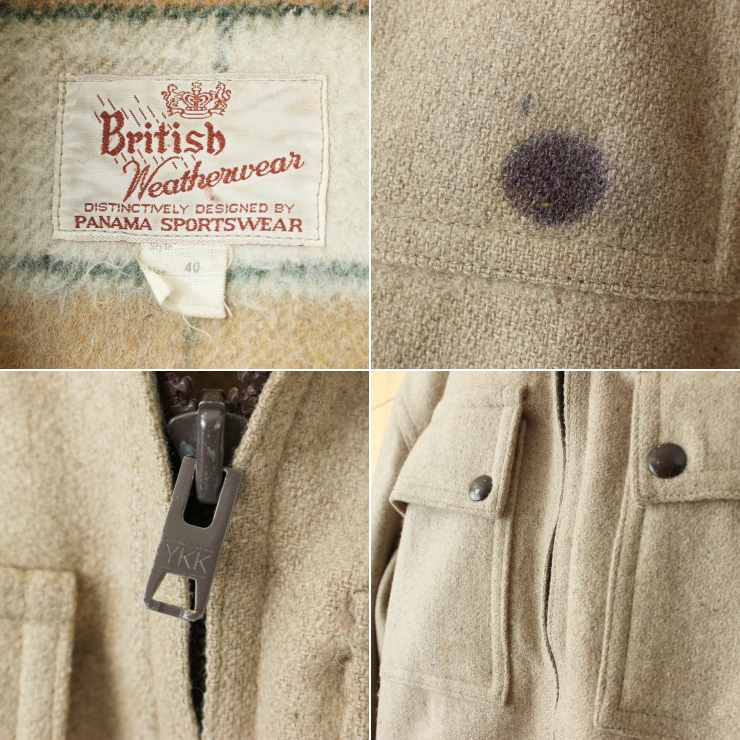 60s 70s EURO PANAMA SPORTSWEAR ウールジャケット メンズML相当 ベージュ ヨーロッパ古着