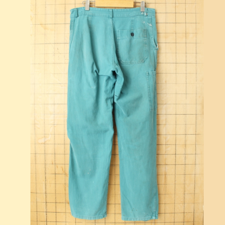 60s 70s フランス コットンツイル ワークペインターパンツ W33相当 グリーン ユーロ ヨーロッパ古着