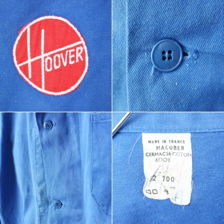 70s 80s フランス製 HOOVER ワークコート メンズXL相当 ブルー ワッペン ユーロ ヨーロッパ古着です。