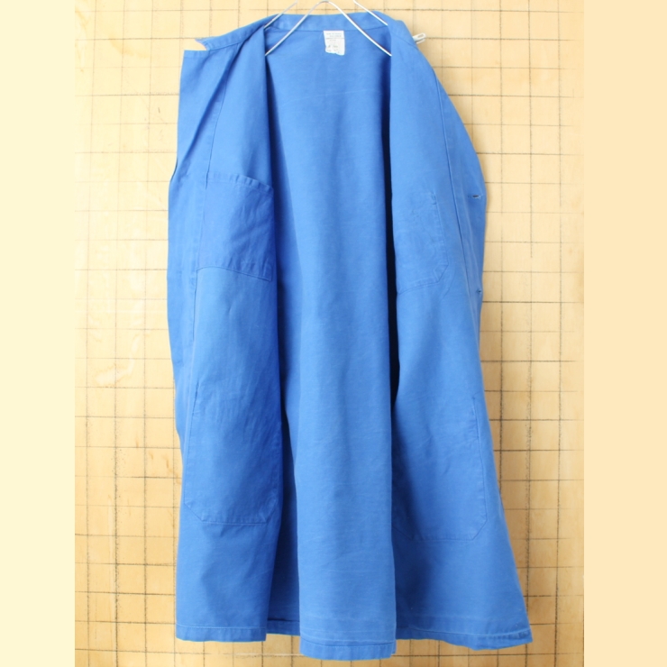 70s 80s フランス製 HOOVER ワークコート メンズXL相当 ブルー ワッペン ユーロ ヨーロッパ古着