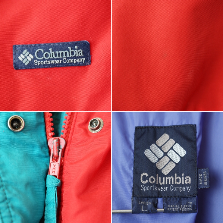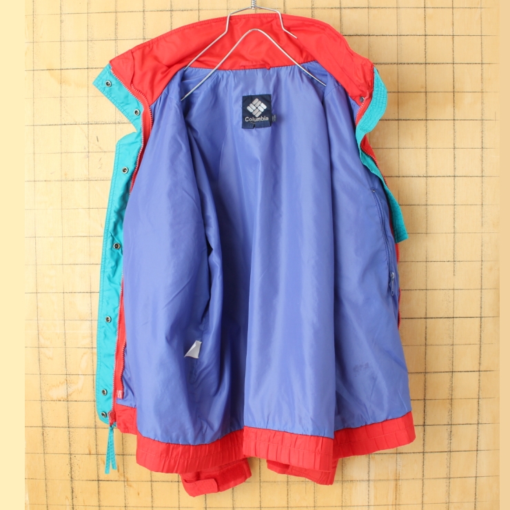 80s 90s Columbia Powder Keg ジップアップナイロンジャケット レッド パープル レディースL アウトドア アメリカ古着