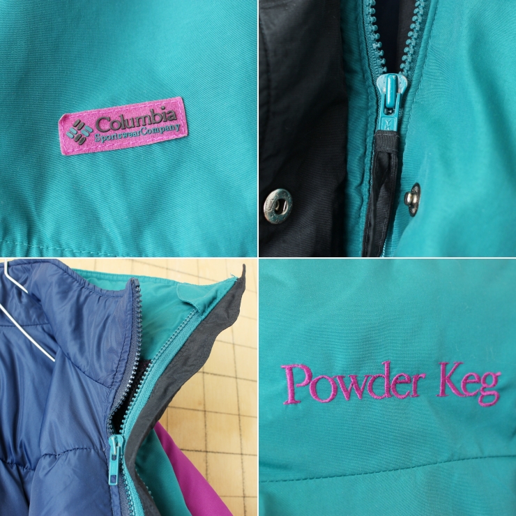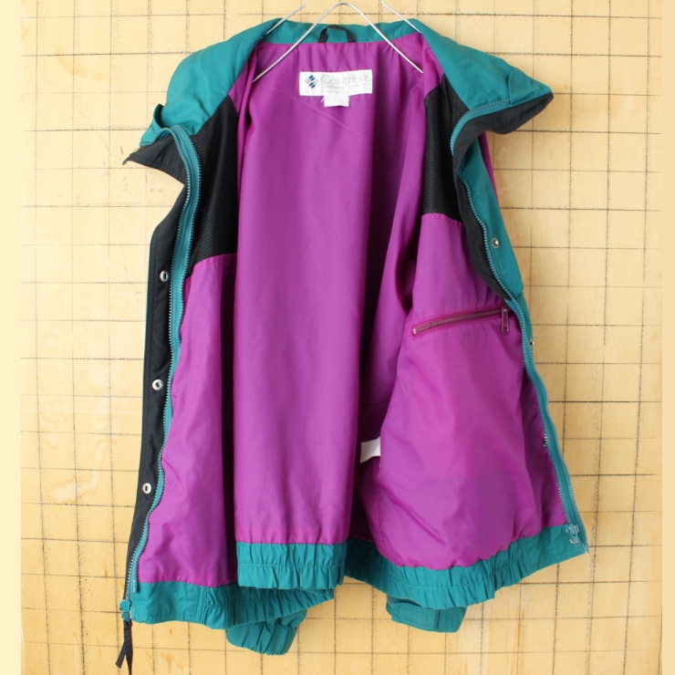 80s 90s Columbia Powder Keg 4WAY ジップアップナイロンジャケット ダウンライナー付 グリーン パープル レディースXL アウトドア アメリカ古着