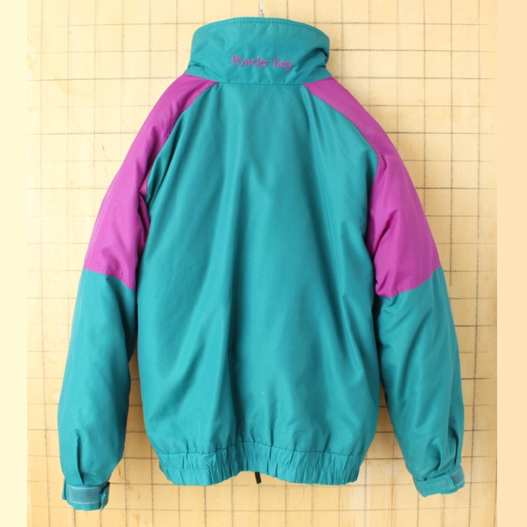 80s 90s Columbia Powder Keg 4WAY ジップアップナイロンジャケット ダウンライナー付 グリーン パープル レディースXL アウトドア アメリカ古着です。