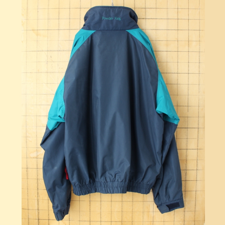 80s 90s Columbia Powder Keg ジップアップナイロンジャケット ネイビー グリーン メンズXL アウトドア アメリカ古着