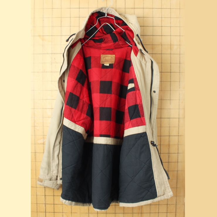90s 00s USA ST JOHN'S BAY 中綿ジャケット ベージュ メンズXL フード アメリカ古着