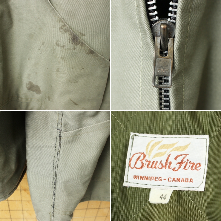 ビッグサイズ 70s 80s CANADA BrushFire 中綿ダックジャケット コート カーキ グリーン メンズ2XL相当 フード アメリカ古着です。