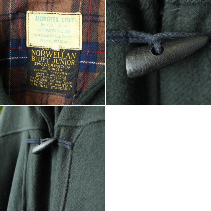 80s 90s オーストラリア製 NORWELLAN BLUEY JUNIOR ダッフルコート ダークグリーン メンズL相当 古着