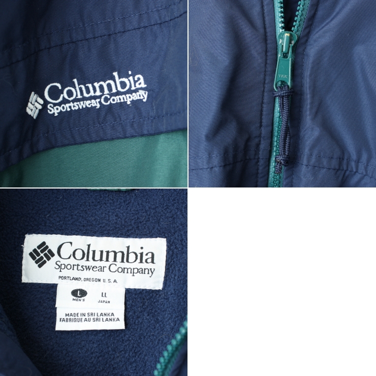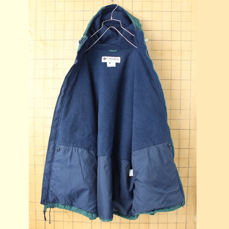 ビッグサイズ 90s USA Columbia ジップアップナイロンジャケット フリースライナー グリーン メンズL アウトドア アメリカ古着です。