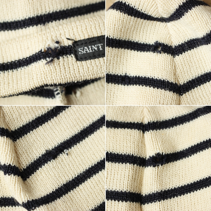 フランス SAINT JAMES セントジェームス ボーダーウールニットキャップ オフホワイト EURO ヨーロッパ古着