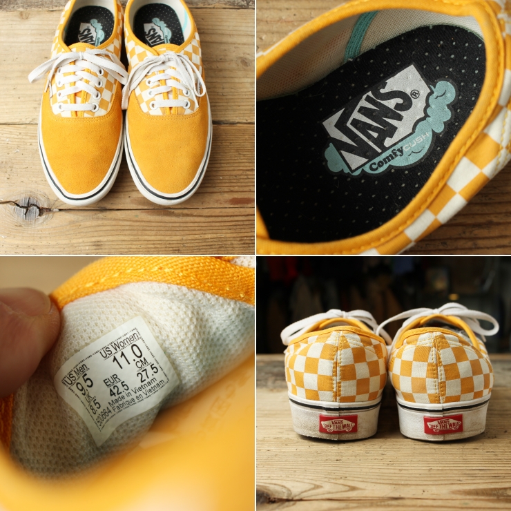 USA VANS AUTHENTIC バンズ オーセンティック スニーカー チェッカーフラッグ 27.5cm イエロー シューズ アメリカ古着です。