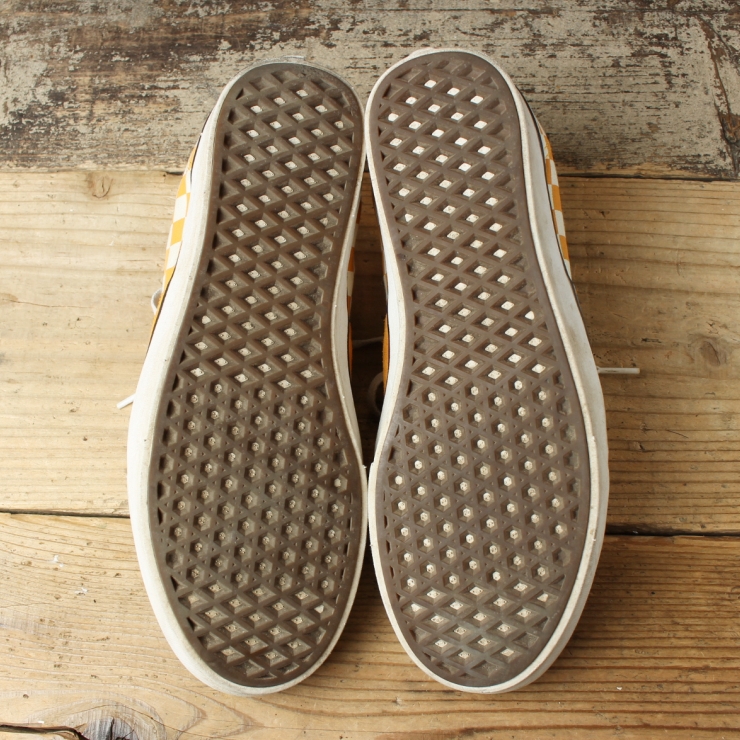 USA VANS AUTHENTIC バンズ オーセンティック スニーカー チェッカーフラッグ 27.5cm イエロー シューズ アメリカ古着