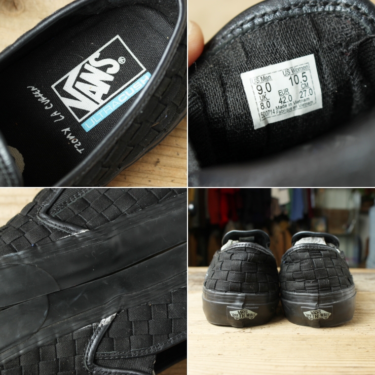 USA VANS バンズ 編み込み スリッポン スニーカー 27cm ブラック シューズ アメリカ古着です。