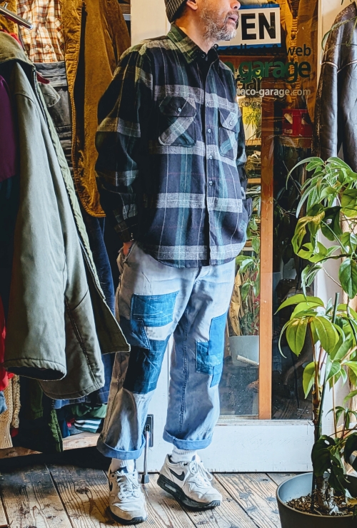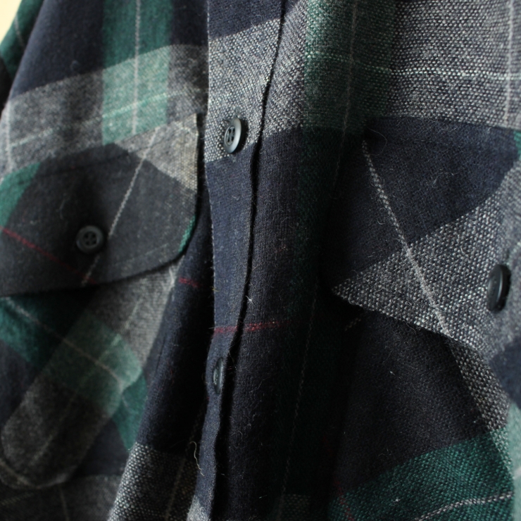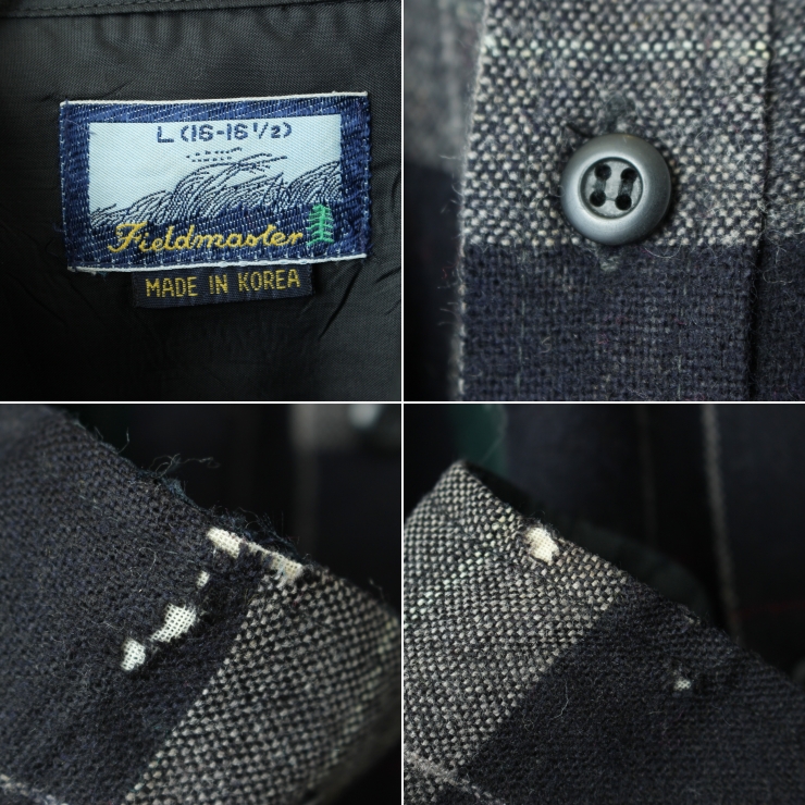 80s 90s USA Fieldmaster チェックウールシャツ ブラック グリーン 長袖 メンズL アメリカ古着です。