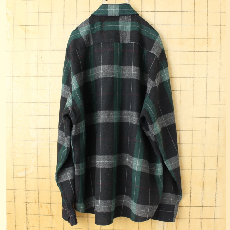 80s 90s USA Fieldmaster チェックウールシャツ ブラック グリーン 長袖 メンズL アメリカ古着