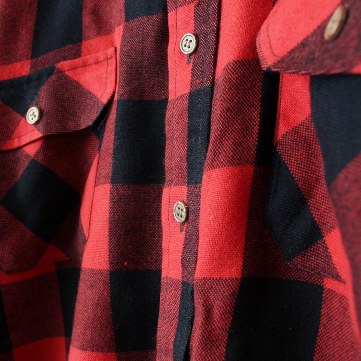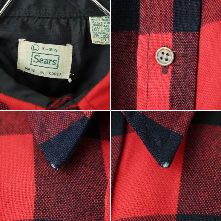 80s USA Sears チェックアクリルシャツ レッド ブラック メンズL 長袖 アウトドア アメリカ古着です。
