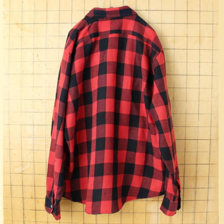80s USA Sears チェックアクリルシャツ レッド ブラック メンズL 長袖 アウトドア アメリカ古着