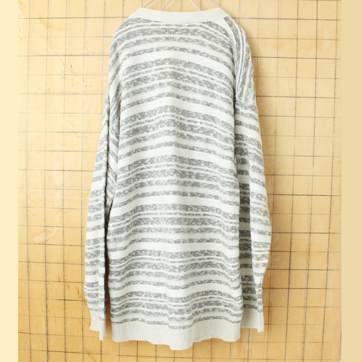 90s USA GREEN LEAVES 総柄ニットカーディガン オフホワイト メンズML相当 アメリカ古着