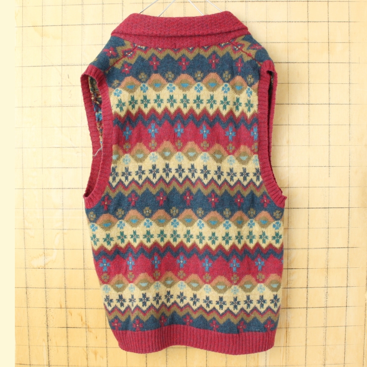 90s USA Eddie Bauer エディーバウアー 総柄ショールカラー ウールニット前開きベスト レディースL アメリカ古着