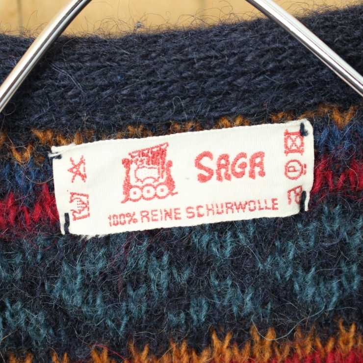 80s 90s EURO SAGA 総柄ウールニット前開きベスト レディースL相当 ヨーロッパ古着です。