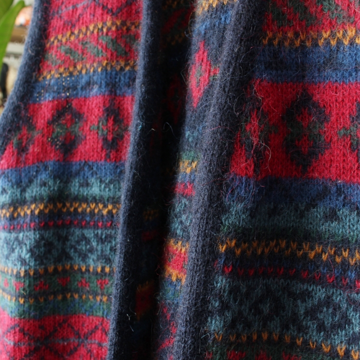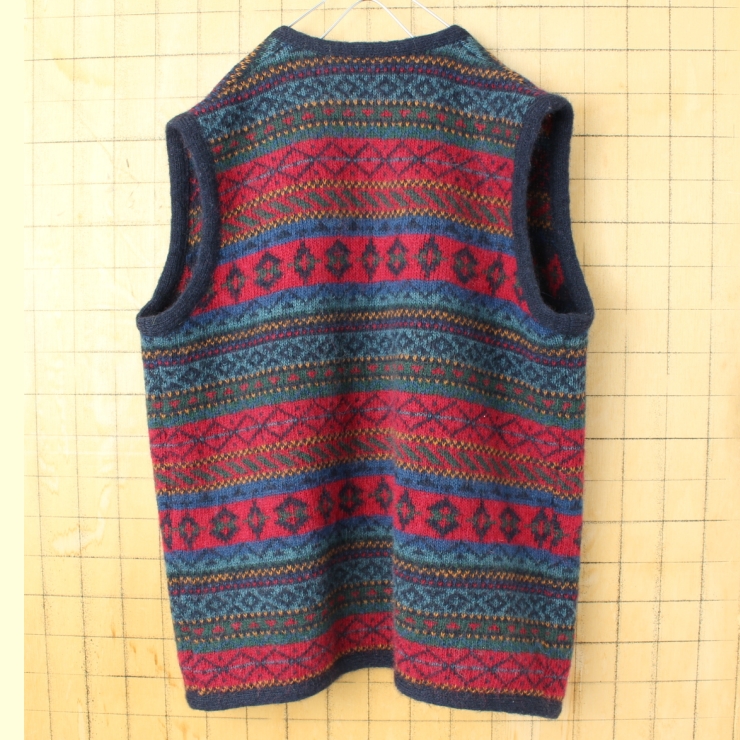 80s 90s EURO SAGA 総柄ウールニット前開きベスト レディースL相当 ヨーロッパ古着