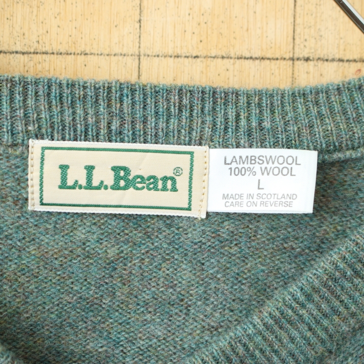 80s 90s スコットランド製 LLBean ラムウールニットベスト メンズL グリーン アメリカ古着です。