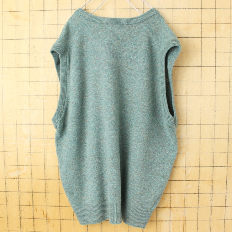 80s 90s スコットランド製 LLBean ラムウールニットベスト メンズL グリーン アメリカ古着