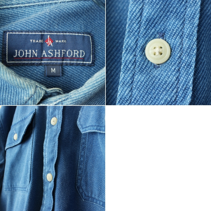 90s 00s USA JOHN ASHFORD コットンシャツ メンズM ブルー アウトドア 長袖 アメリカ古着です。