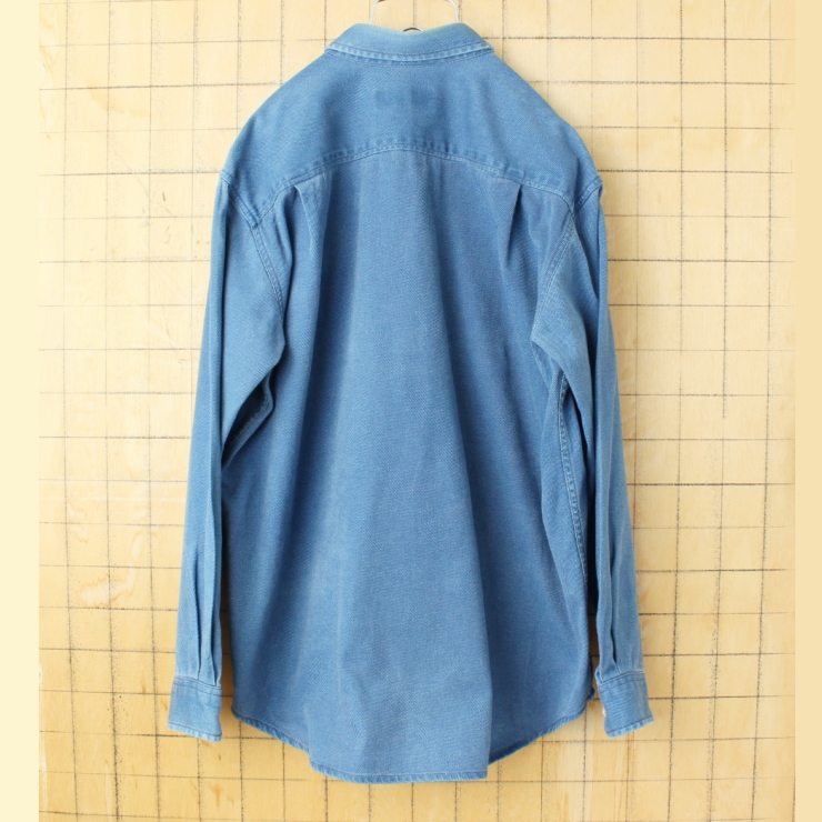 90s 00s USA JOHN ASHFORD コットンシャツ メンズM ブルー アウトドア 長袖 アメリカ古着